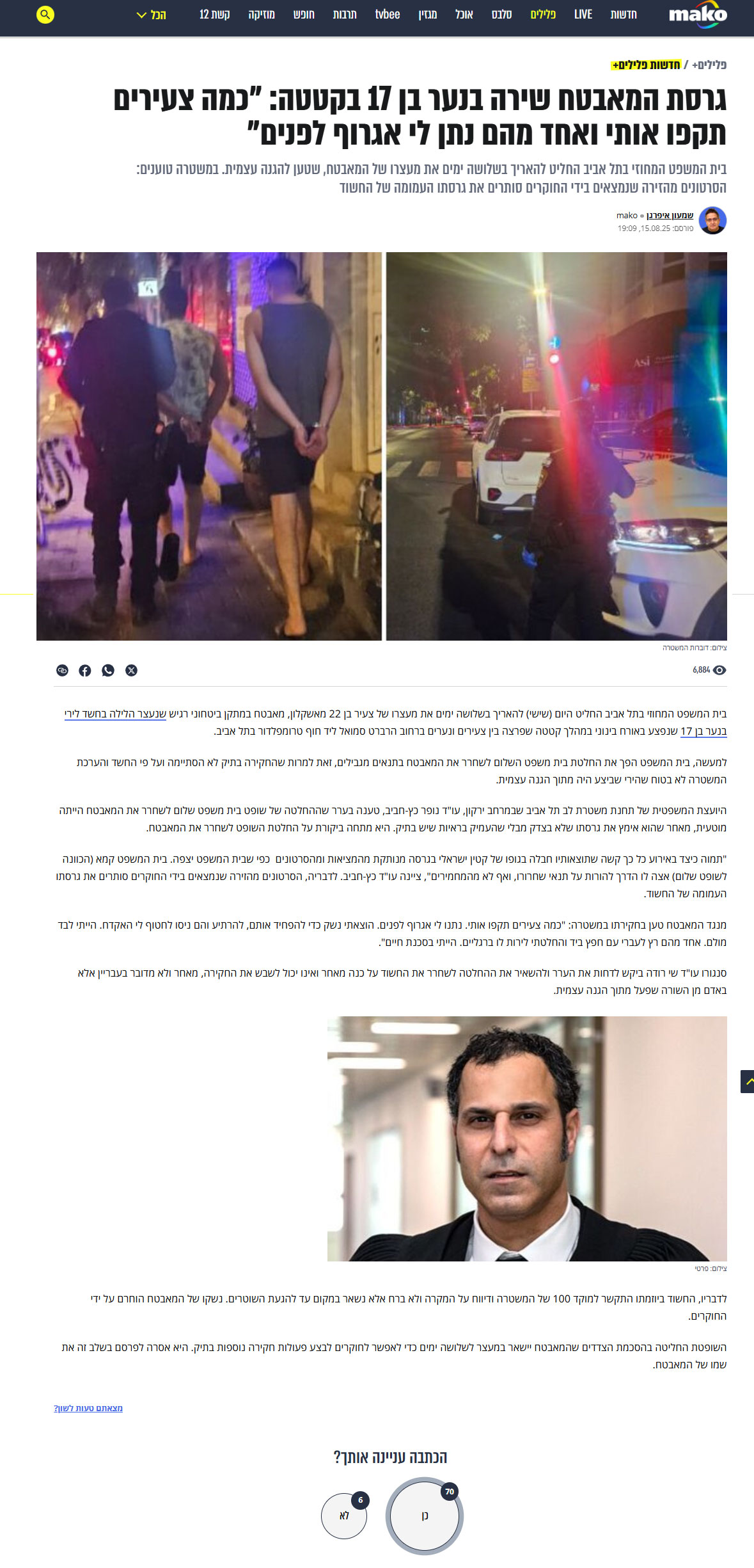לקט עיתונות משפט פלילי פרשת הרצח והדוגמנית: המשטרה והפרקליטות החליטו לשחרר את כל החשודים למעצר בית – mako, 13.11.2025 קרא עוד » עו"ד שי רודה נובמבר 13, 2025